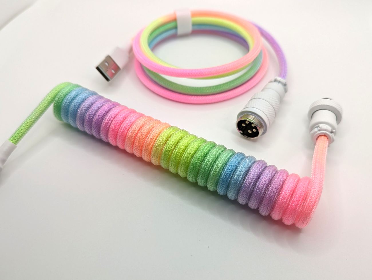 Cable Colour - Rainbow paracord covered in Clear PET sleeve