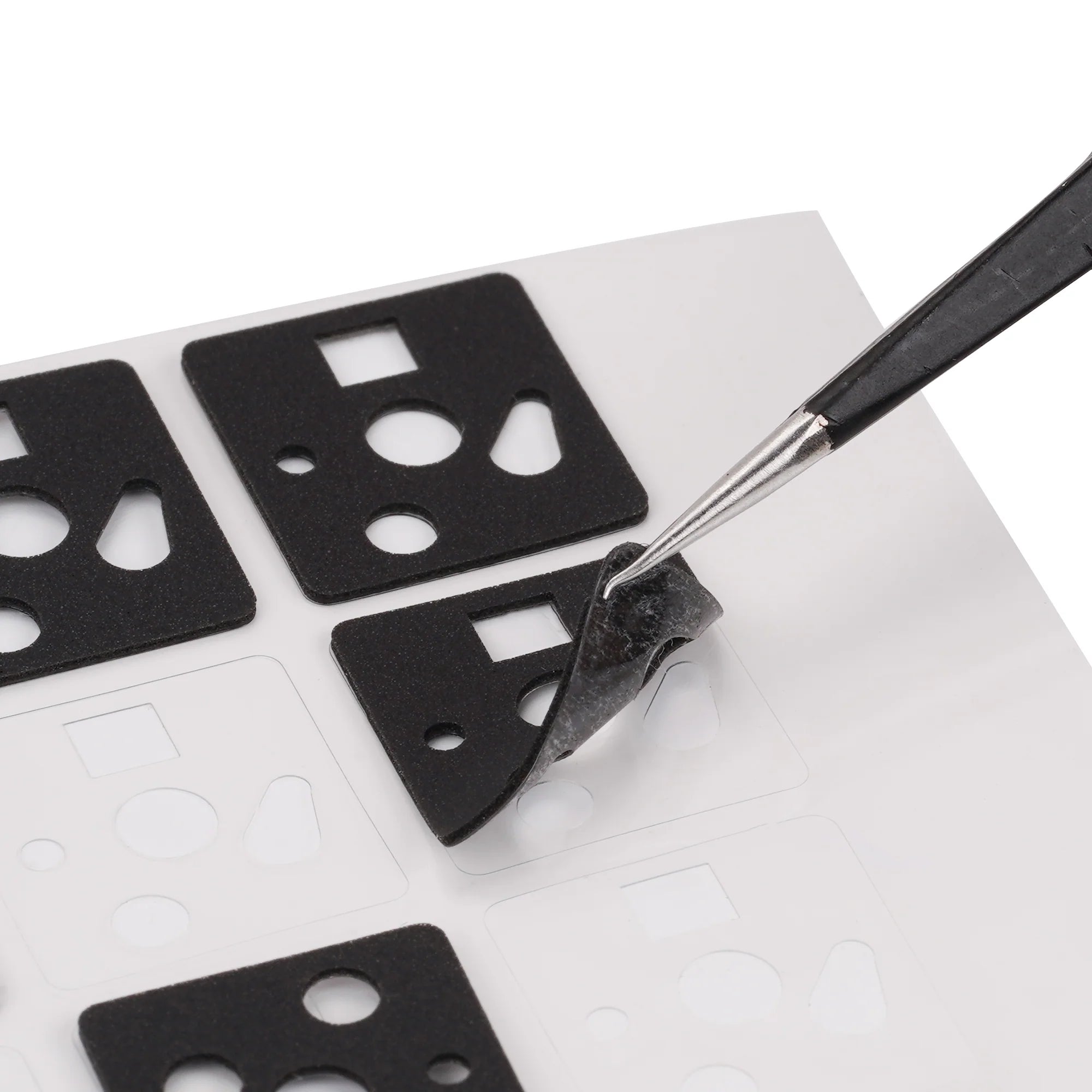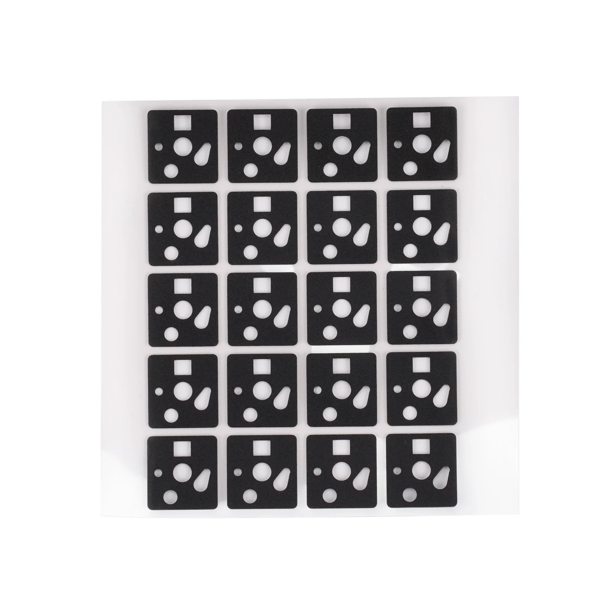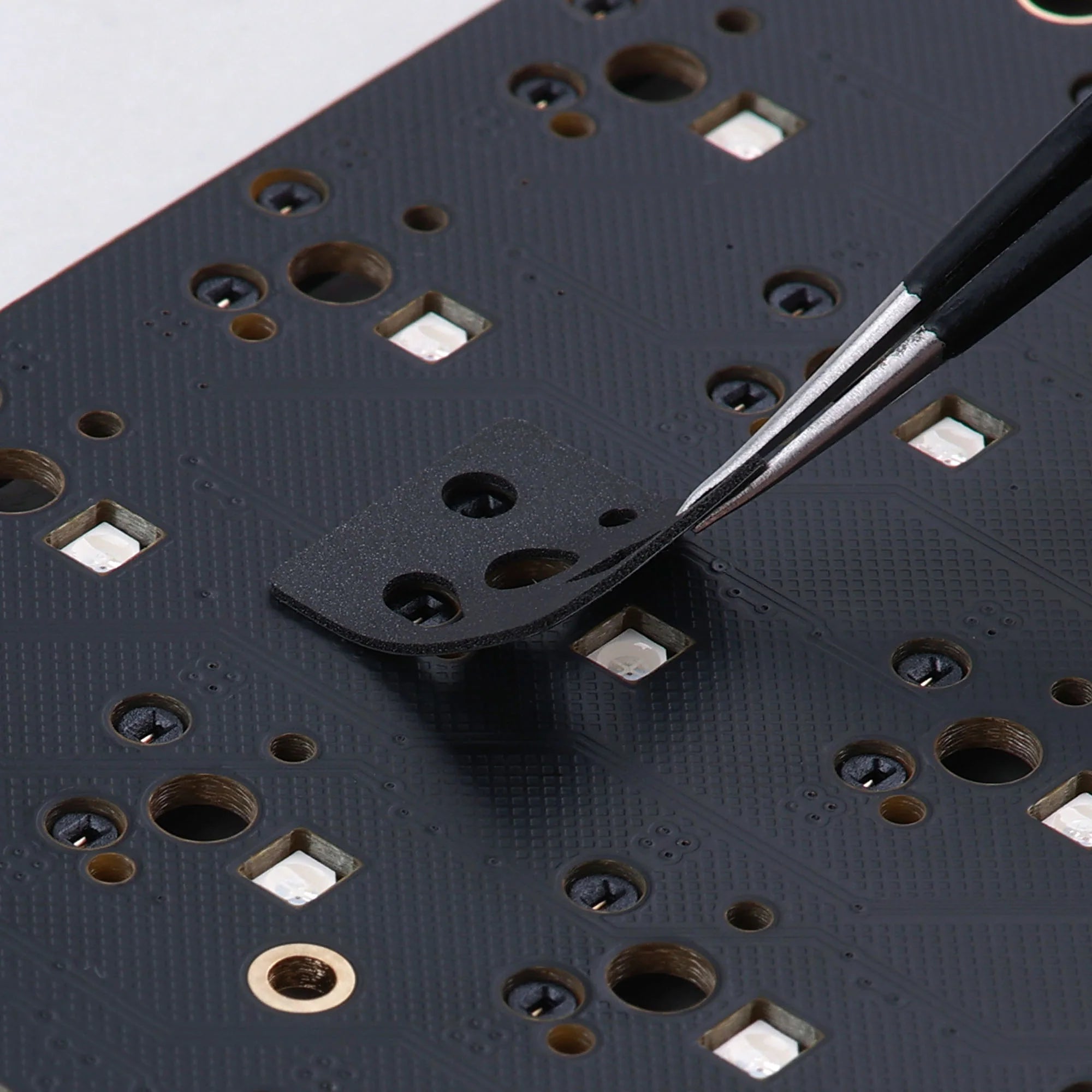 Function: Could be glued to the PCB( it has glue on the back), used to buffer the force between switches and PCB, the typing sound would be modified