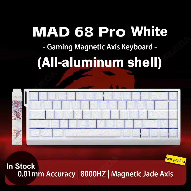 The MAD68 PRO Magnetic Switch Keyboard is designed for professional gamers and high-end users. It features industry-leading magnetic switch options, including Magnetic Jade Custom Switches, Sealed Magnetic Silver Switches, Magnetic King Switches, and TTC Titan Magnetic Gaming Switches. With true 0.01mm precision and 0.1ms tournament-grade low latency, every keystroke is faster and more accurate, giving you the edge in every game.