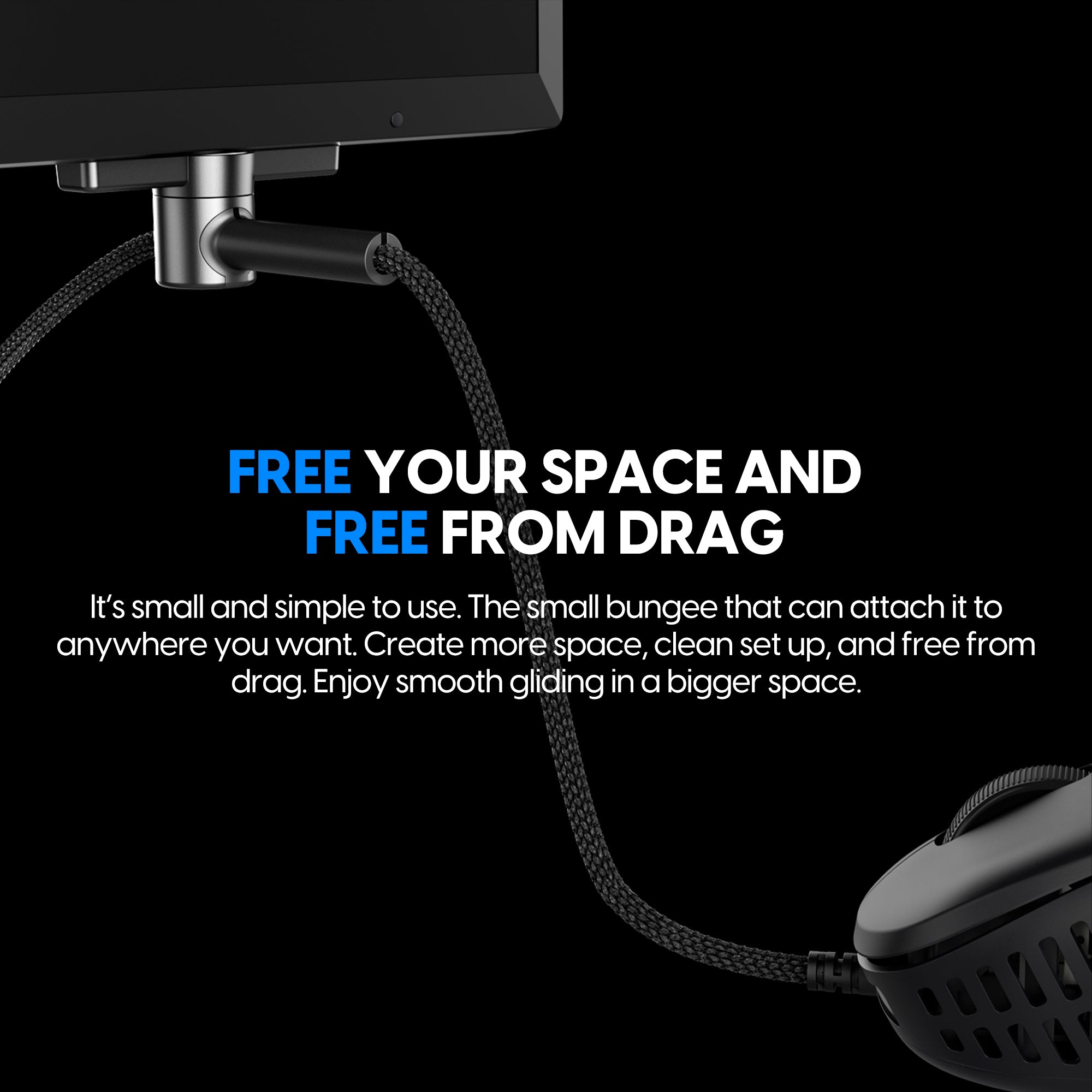 It’s small and simple to use. The small bungee that can attach it to anywhere you want. Create more space, clean set up, and free from drag. Enjoy smooth gliding in a bigger space.