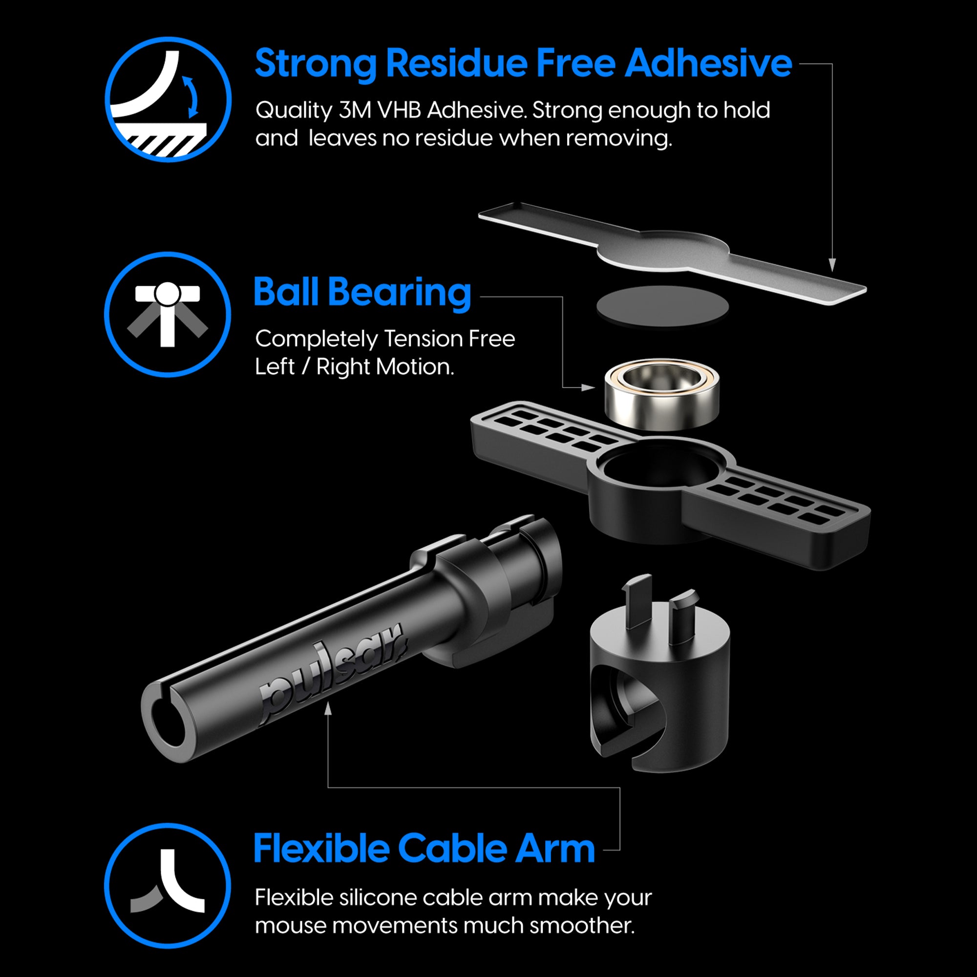 - Strong residue free adhesive: Quality 3M VHB adhesive. Strong enough to hold and leaves no residue when removing.